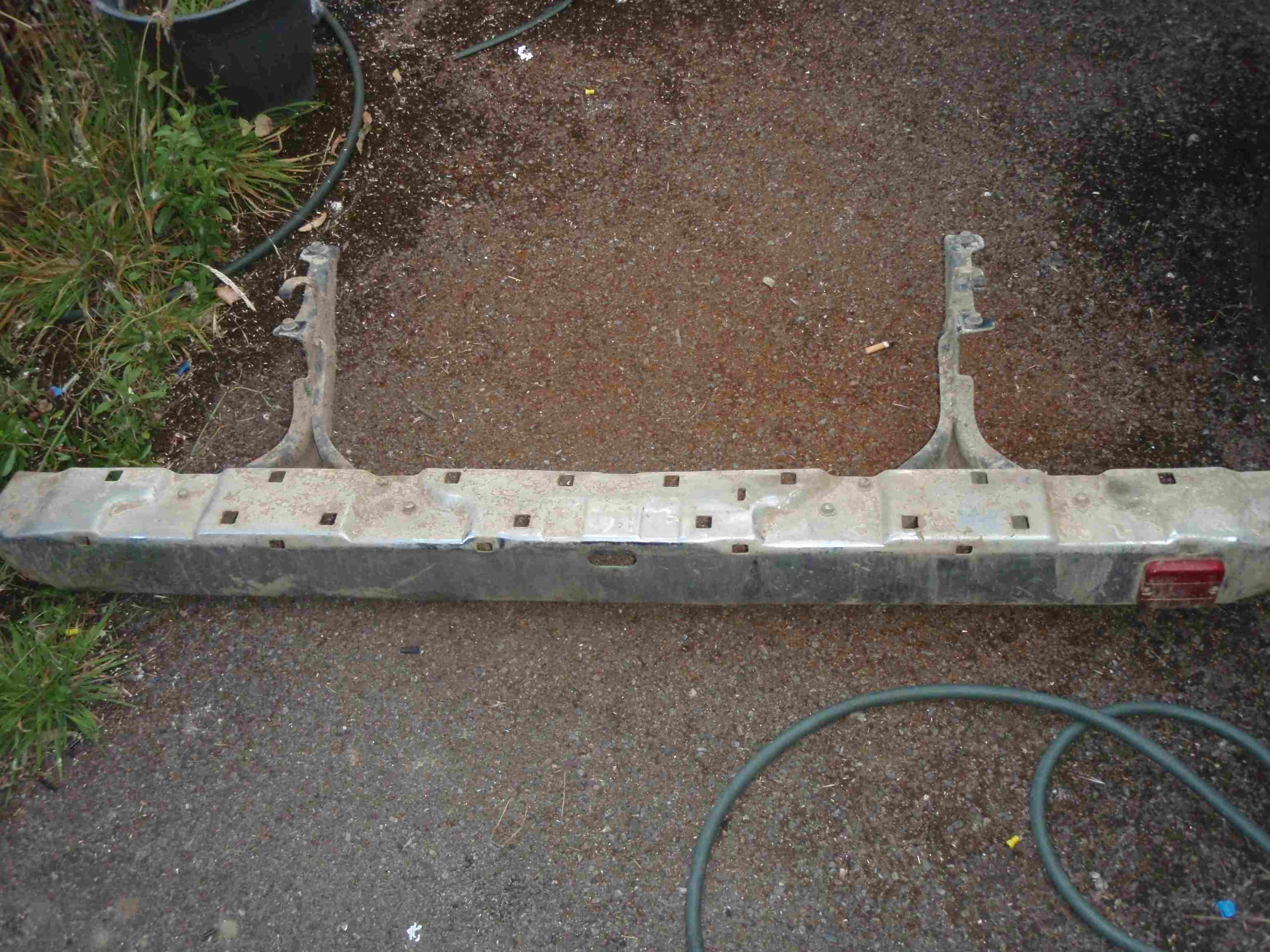 Chrome front bumper plus indicatorsL: From a 90 to 92 model but will fit 92 to 95. The passenger side does hang low, due to off road damage, but could be straightened back out. The lower valance has been removed as it was knackered. Had to cut the fixings off so new ones will have to be made.