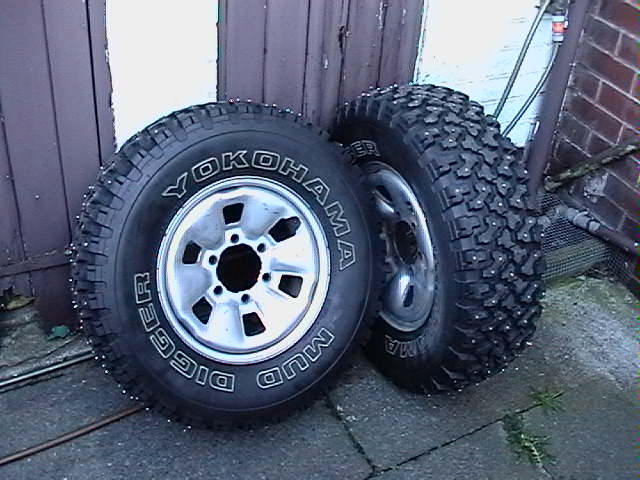 I have 4 Yokohama Mud Diggers on Toyota steel rims for sale. The size is 30-9.50-15 and they're STUDDED!!