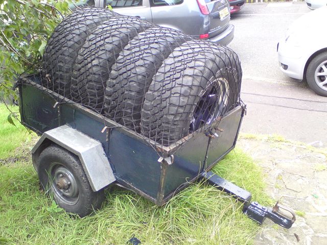 To make it easier for collection I will include the trailer, old but servicable and perfect size for transporting the wheels. Small enough to be towed without the need for electrics as surf lights can be seen either side of trailer.