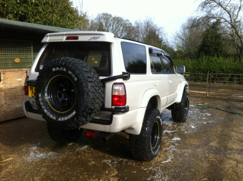 and Tony N fitted an additional 2" body lift, in order to fit Mickey Thompson Baja MTD 305/70/16 on black modular steel rims. They have plenty of tread on them and a brand new spare, rear slung on the back. (The good thing about this combo is that the wheelbase is slightly wider and longer due to the tyres/wheels, which offsets any additional roll you would normally expect due to the lift. It still corners as well as ever) I also have had the following fitted from Roughtrax in July 2012: