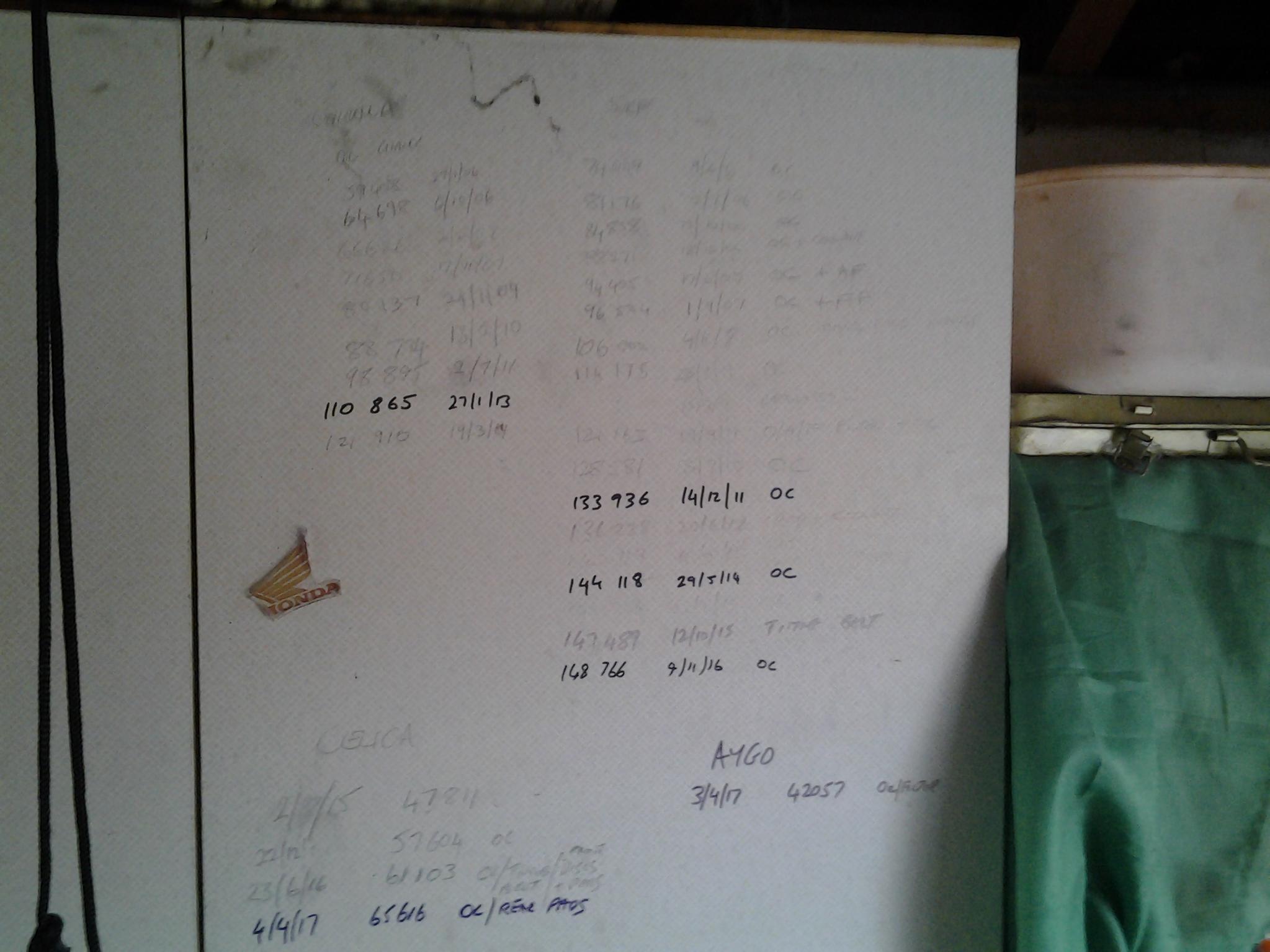 Picture is off my service record (cupboard door in garage). I do all my own basics oil, filters etc.
