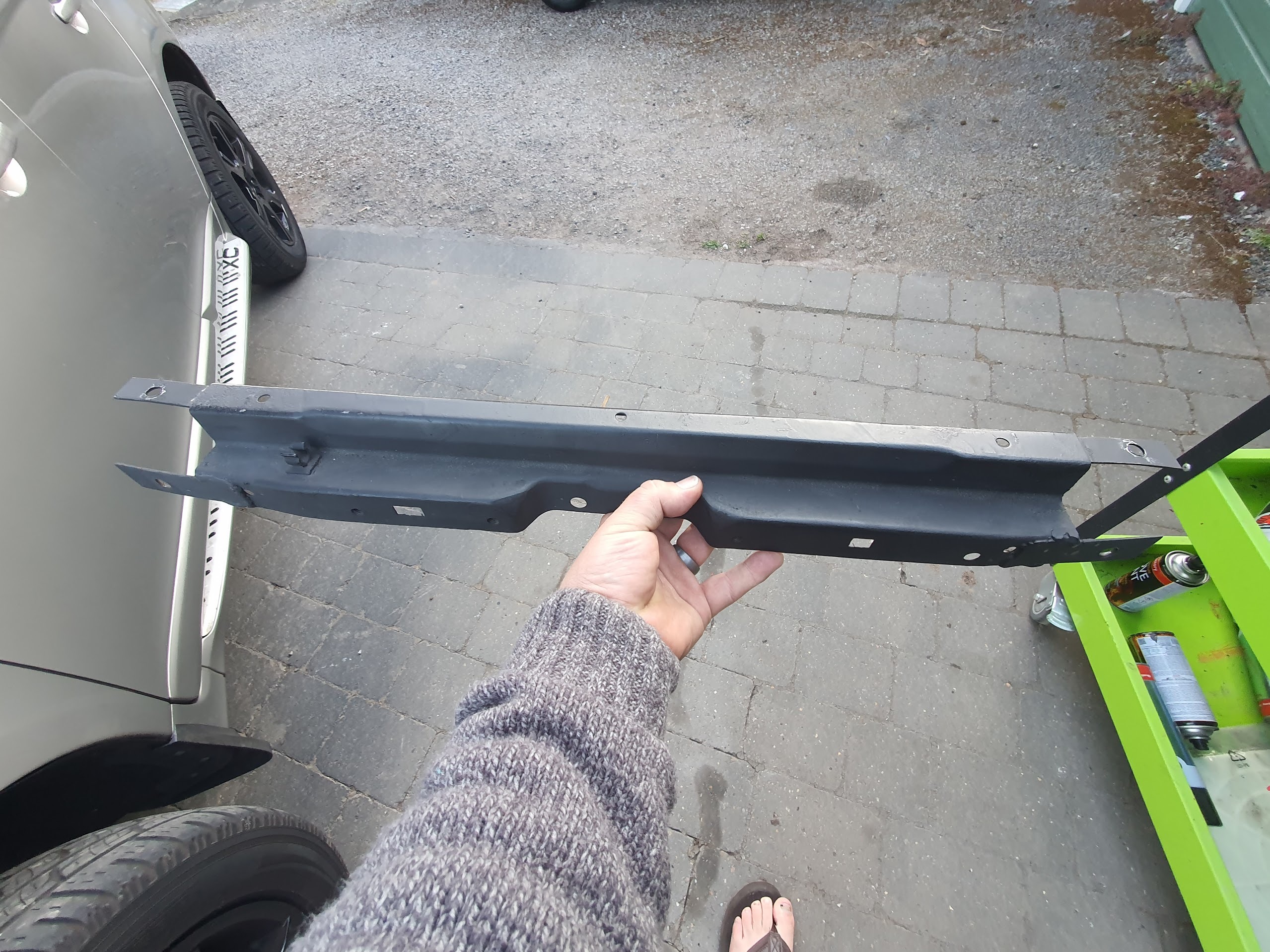 Basically it's in the way when trying to get the 1uz in/out with the gearbox attached. So I've cut it out and welded "ears" to it and made holes so you can simply bolt it in/out whenever you need.