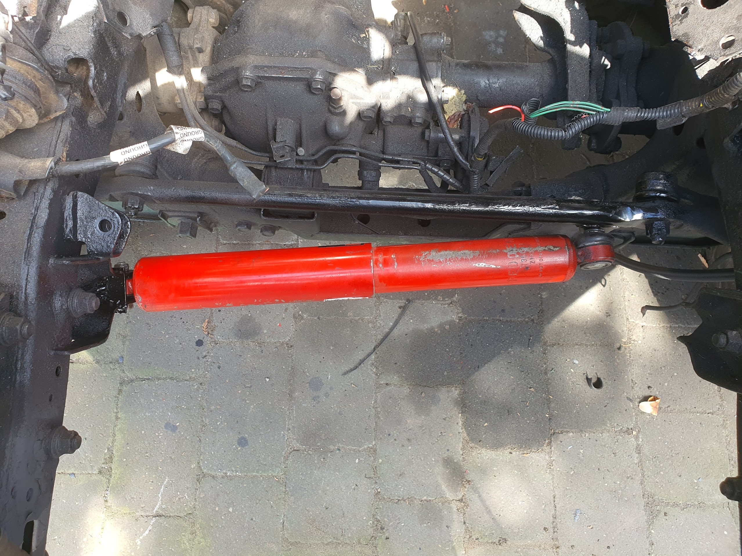 b) Cut the bracket off, weld it onto the bottom of the steering rack, and then make a new bracket and weld it to the chassis for the other side