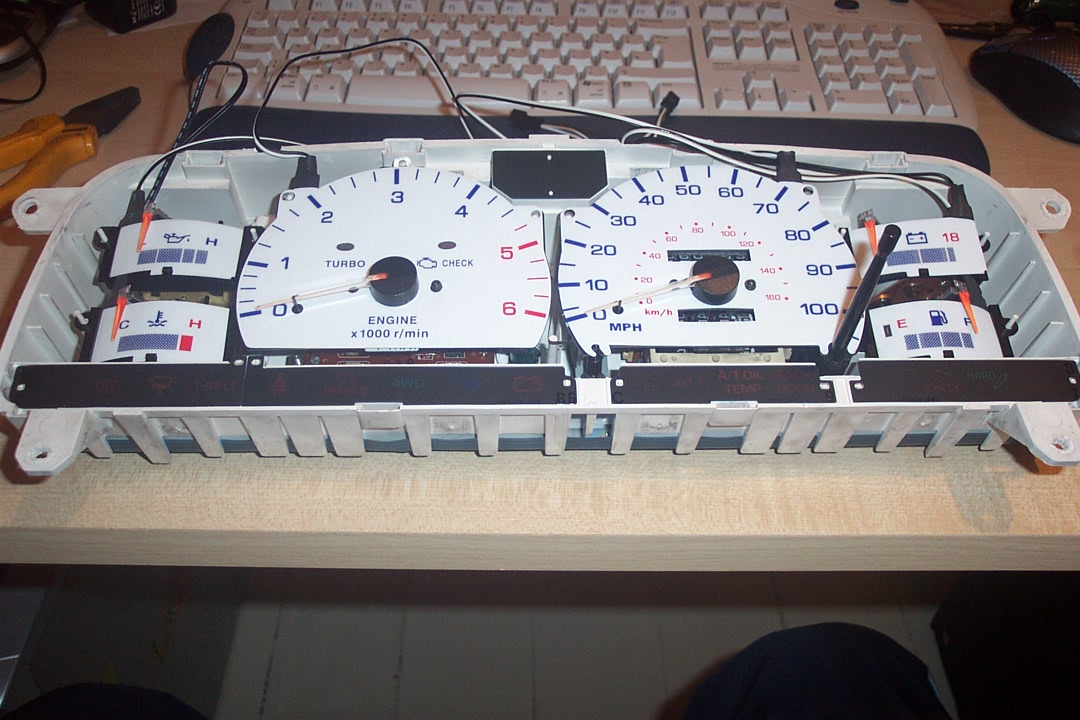 right doing the dials ealier - the dash is all out still and dials are next to me. I got the rev counter on no probs but due to the holes being cut into the speedo for the trip etc when you put the screws back the centre bends up and jams the speedo needle (as Andy_Enuff has found), i have refitted about 20 times now and cant get it perfect.