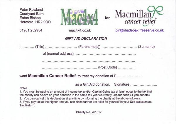 Cheques should be made payable to Macmillan 4x4 Challenge