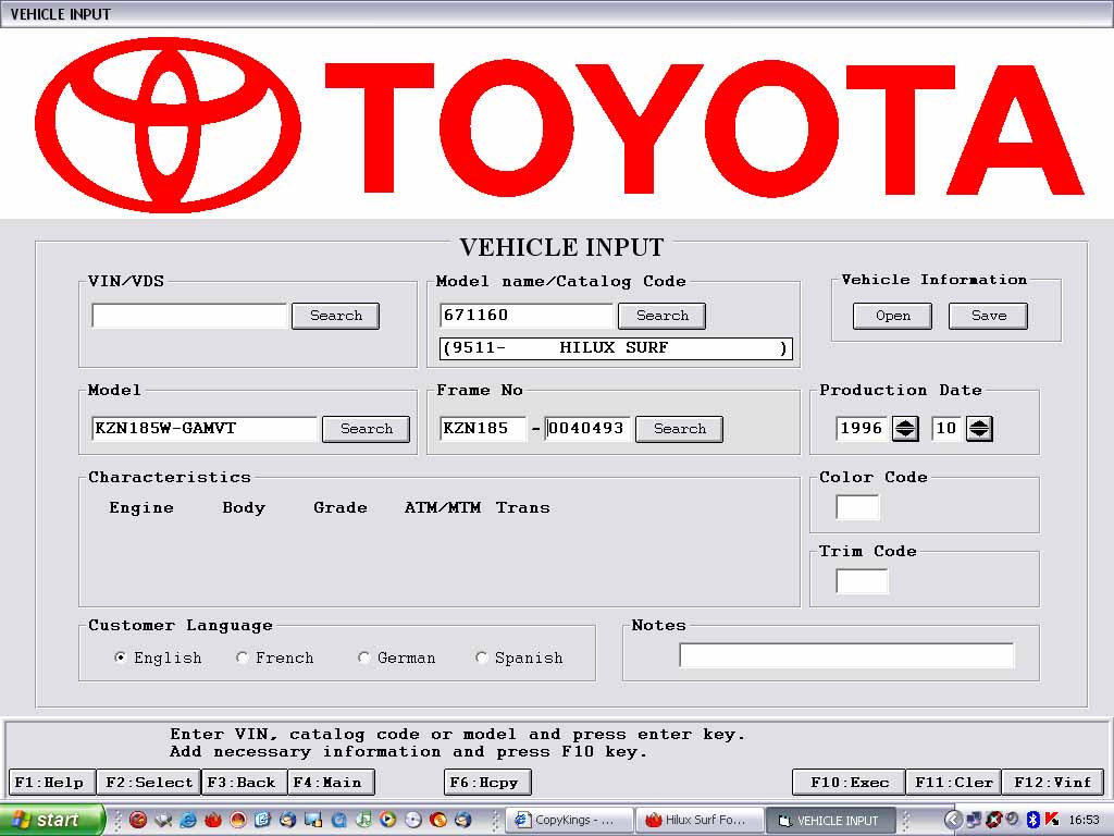 NOT being the commputer wizzard I would like to be I just blunder about untill I get what I want (waists time and stops me going down the pub but the wife likes it cos Im home more).Then I wander of to the toyota main dealer with the info and he always asks where I got the info from(I just tell him I got a m8 in AUS that works for toyota and he sends me the numbers) and recons it aint right untill he looks at his own disc,then he shuts up and get me the bits.He's a good lad though and very helpful. Any one in the Ipswich area wot needs help I would recomend our toyota main dealer,they are realy quite helpful and freindly.