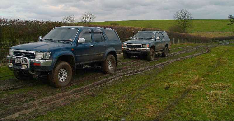 The final lane started well, litterally track at the side of a field, but the recent rain made things very slippy and we nearly got stuck at the bottom of a small valley! Only good offroad technique got us out- low range/lowest gear and NO REVS. At tickover the Surfs were easily able to inch back up the slopes. Any kind revs meant the tyres would spin uselessly- still we got out in the end!