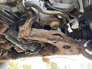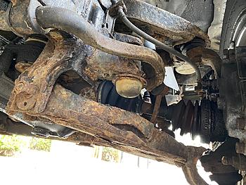 It all looks very orange underneath, and whilst the Ladder Chassis can be repaired, galvanised & painted etc., I'm a little concerned that it might be easier / cheaper / better for peace of mind to simply scrap all the Suspension components and fit new parts..