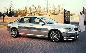 "This is an Audi A8 in SILVER made for a sheikh IT IS NOT SILVER COLOUR...IT IS MADE OF SILVER"