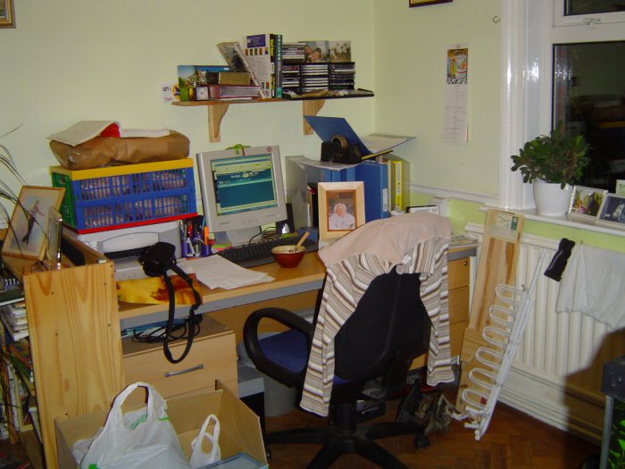 Mrs K reckons my hobby/computer/radio/workshop/office/study room is a complete mess and needs tidying up. She thinks it's an embarrasment. She will be even more emabarrassed to find I have shared it with the forum.