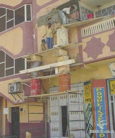 Holy cr.p reminds me of a trip to Dubai a couple of years ago saw an indian guy leaning out of the top floor window using a 9 inch plate grinder. His mate was holding onto his belt incase he slipped.