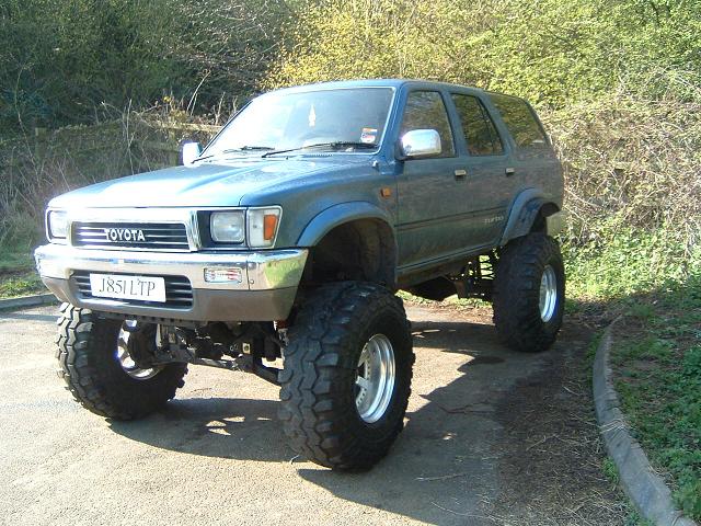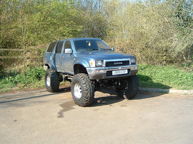 38.5s (thanks Nigel) +4" superlift on the rear (thanks Nigel) +2" spring spacers on the rear (thanks Tony N) +4" superlift on the front (thanks Luke for the kit and all your hard work last weekend. Nigels mechanic and my next door neighbour) + 1 1/2 BJ spacers on the front (thanks 4 crawler.com) + 4" Pro Comp ES9000s all round (thanks Pro Comp UK) + 3" body lift (thanks Luke)