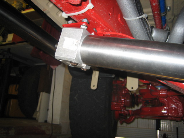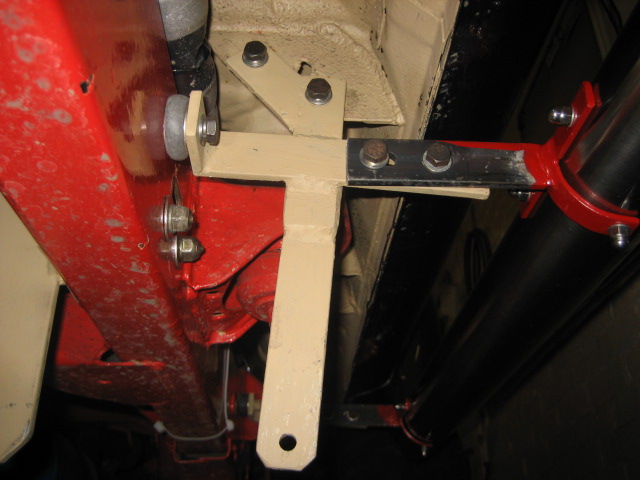 Got it mounted ok, due to the size of it this is the only place i could find to fit it tho so it's more or less central to where the step's going, and it's at an angle so i'll need to make some sort of slip coupleing to the step for when it slides forward, main bracket i made from a sq of flat mild steel and some box,which bolts to the gearbox X member, and just a clamp on the other end to steady/suport it, taped over the ports to keep the $hit out,