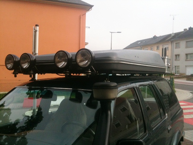 Its fixed on a roof rack I welded up with my brother, this is attached to the roof (and the crossbars in the roof) with airline rails... Just loosen the bolts and the whole rack can be detached, leaving only the rails on the roof. All cables are connected through the roof with 2 waterproof connectors I got in a boat-shop.