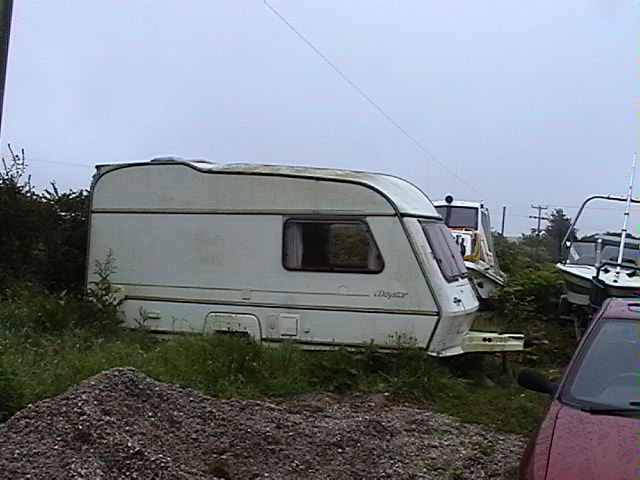 Well I've gone and done it, Karen lee 'n' me are now caravan owners, I couldn't bear another year of suffering under canvas, besides I'm not getting any younger! We are very lucky 'cos we where given it but we had to collect it from Wales, Abersoch to be precise. My mother-in-law & partner lived in it for two years whilst they where building a house, then left it for quite a while as you can see in the pics. On further inspection though there seems to be some rot around one of the front windows.... but we'll see how we get on.