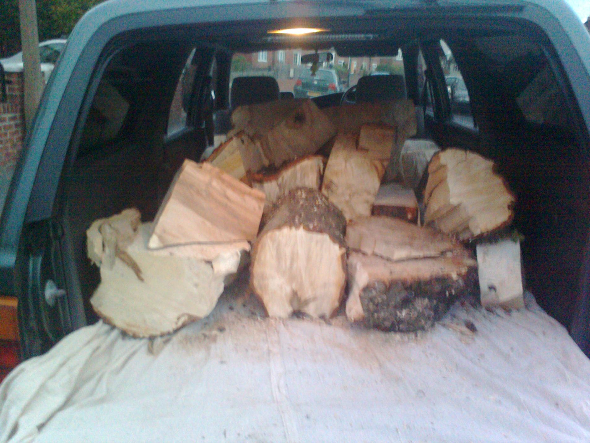 Looks like my springs are totally shot!, but there if a full load of logs in the boot for the stove.