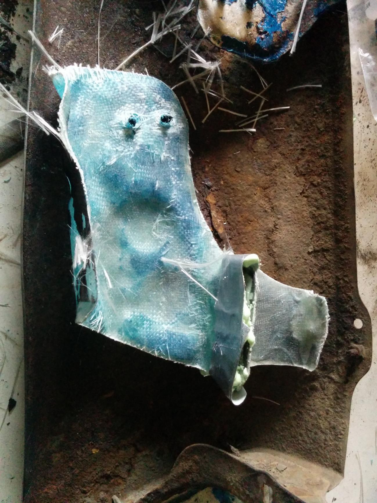 I am toying with making the initial form using expanding foam and then skinning the surface in glass...