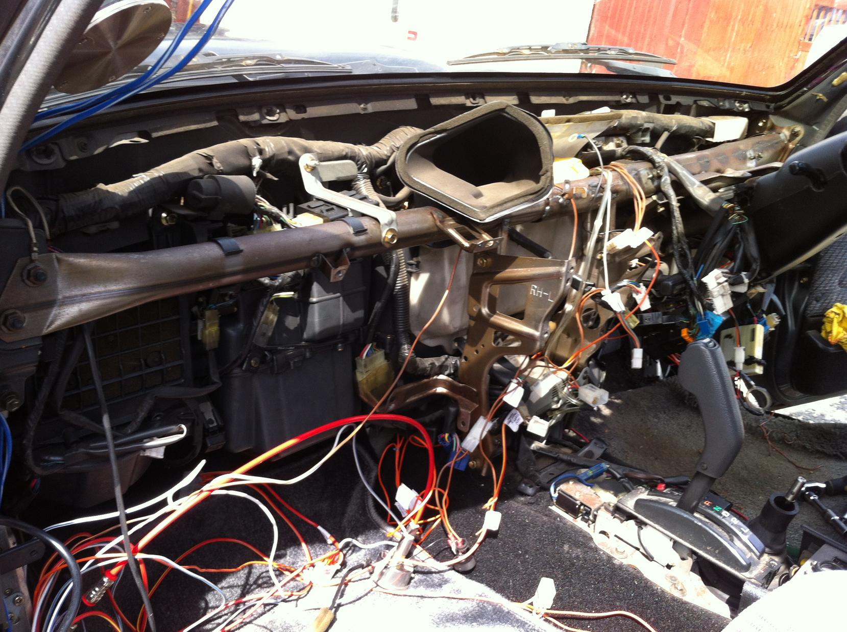 made a start in making a complete new dash, surprised myself and managed to strip out most of it in 3 mornings, looks a real mess now, went and got some thin marine ply to make the new one #first two pixs are how it was and third the mess