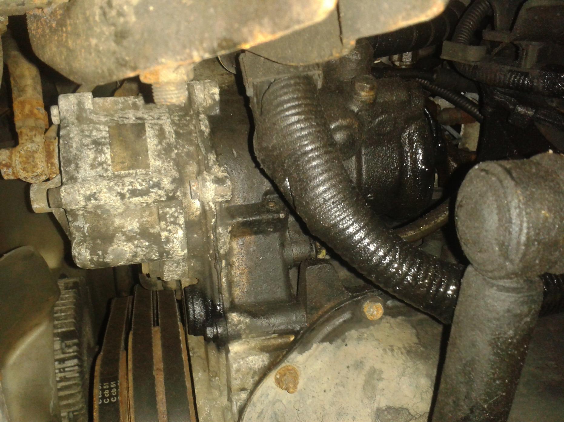 Hi, I've got a mystery leak that's coating the passenger side of the front axle with oily residue. It seems to be coming from the rear of whatever the component that mirrors the alternator is.
