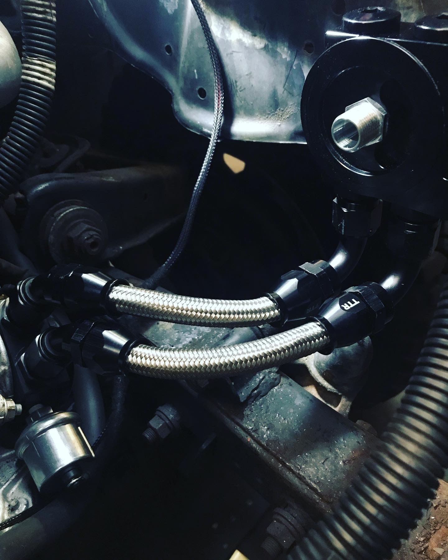do you have a link for that oil filter plate? im looking for something like that before i supercharge it.Originally posted by DMAudio View PostWell it’s been a tough slog. Engine is in its final resting place, Walbro fuel pump is in the tank and refitted along with new fuel filter and AN-6 fittings. Oil relocation is fitted with new oil pressure and temp sensors. Loom is all fitted and shoved through the firewall. Gear linkage shortened and props refitted.