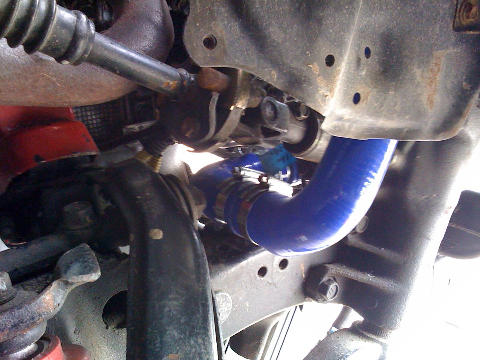 the pics show the mounts and the re routed bottom hose. the bottom mounts have the foam and support the rad and the top ones have rubber fixings.