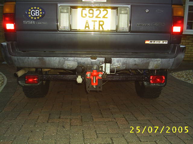 With an existing lamp it was easy to run a 8amp wire between the bulb positives (centre), using the spade terminals- the original lamp ends up with two wires in the middle in the same terminal.. The earth sides of the bulbs were taken in to ring tags and fixed to the towbar chassis. All wiring is kept ontop of the towbar frame and held with ties.