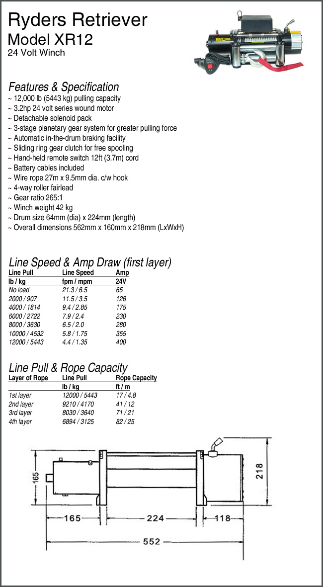 Overall I'd prefer a 12V winch as despite the reduced current draw of a 24V, there's too much scope for things going wrong with the wiring e.g. a welded relay contact that could end up frying the cars electrical system