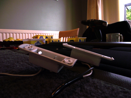 First of all, you need to carefully decide where you want to put them, remembering to fit them where the gaps are in the door construction! As you'll see from the pics, I have put mine on the curved strip. This allows the light to sit flush with the curved strip as the light lens is also curved.