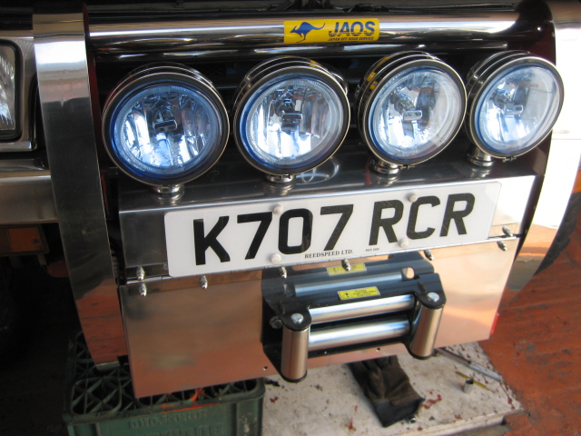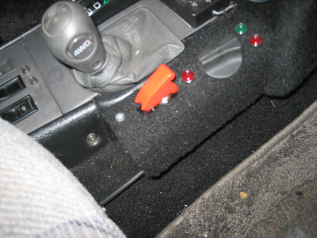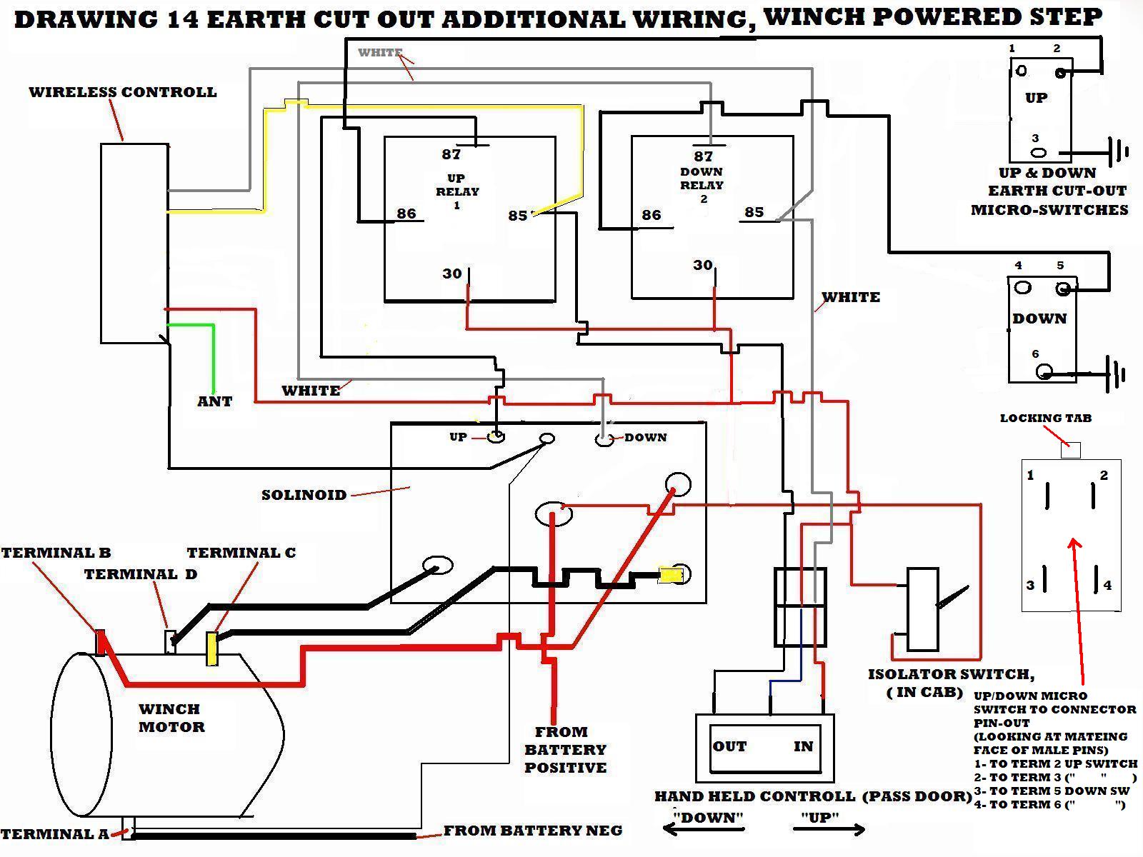 the step is also able to be extended and retracted by an air ram, controlls so far are mounted on the passenger door and are a mechanicle switch to let the step in or out (air), and the hand held controll to raise and lower it, (although untill i rig a override fail safe type system to stop the winch over pulling on the step and possibly tearing off something i'm useing a wireless remote,