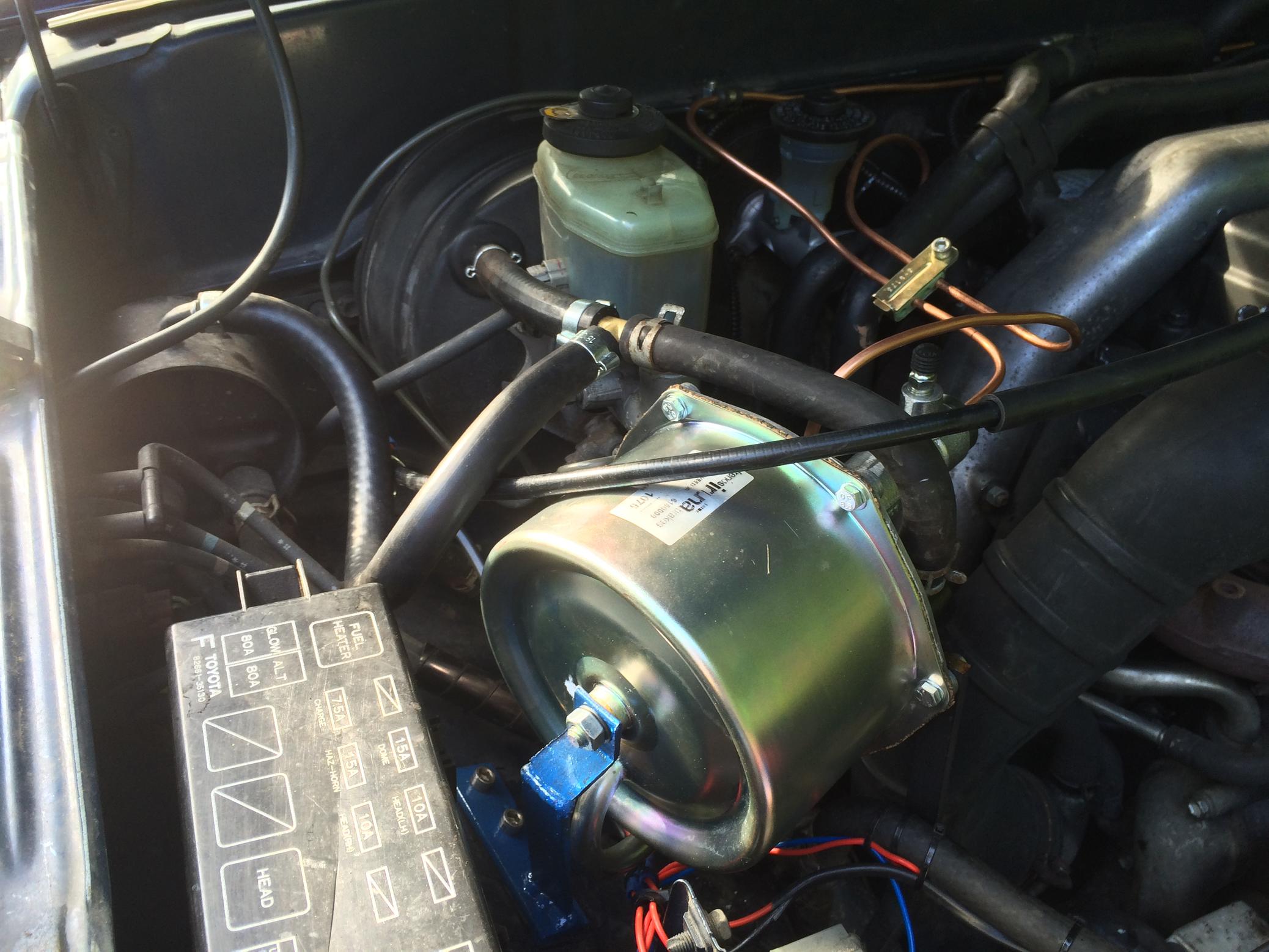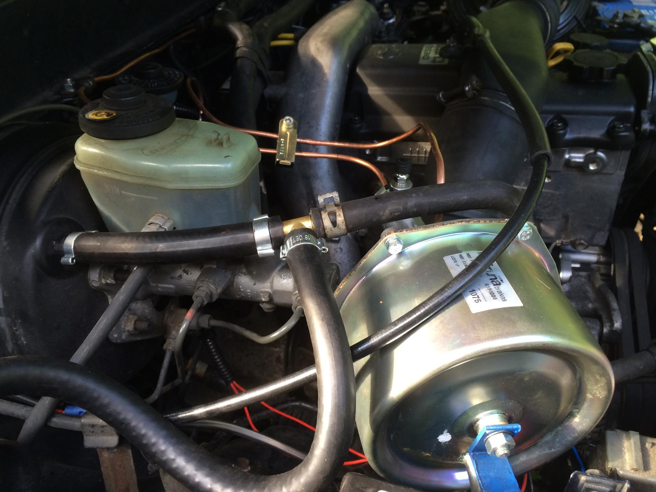 Hi, i have recently been working in new bond street installing (welding) a dimond vault. Not being able to park my van in the city, i took the 4runner. As you know the traffic in and out from the city to the M4 can be painfully slow at times with constant stop-starts. By the time i reached the motorway my left foot was really aching. I did a bit of research and some where on one of the LR forums i read that some of those guys fitted a servo to operate the clutch (power assisted). Great idea! Well i bought a compact single servo from car builder solutions and fitted it into the 4runner. What a difference a servo assisted clutch makes to city driving, it used to be a real pain but now a pleasure. It was a very strait forward modification making a couple of brackets and fitting the new pipes to and from the servo and to the point where the slave cylinder picks up. I have put in a few photos for all to see.