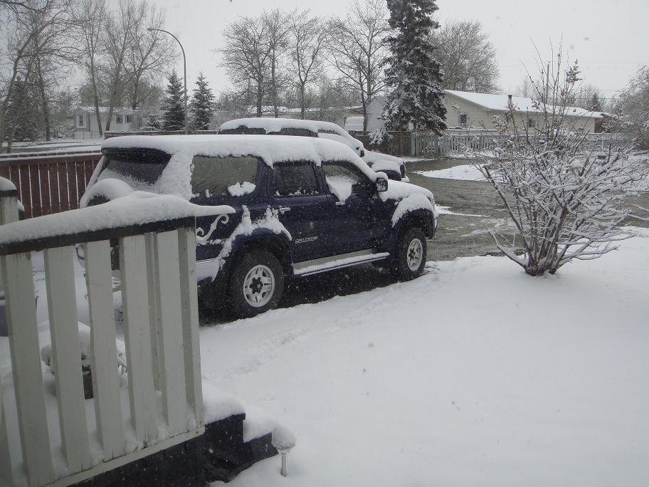 So I took this picture on Saturday, May 16 and we're under another heavy snowfall warning for tonight. I do enjoy it thought, my brother spotted a moose in my front yard on Friday morning, hope I'm quicker with the camera next time.