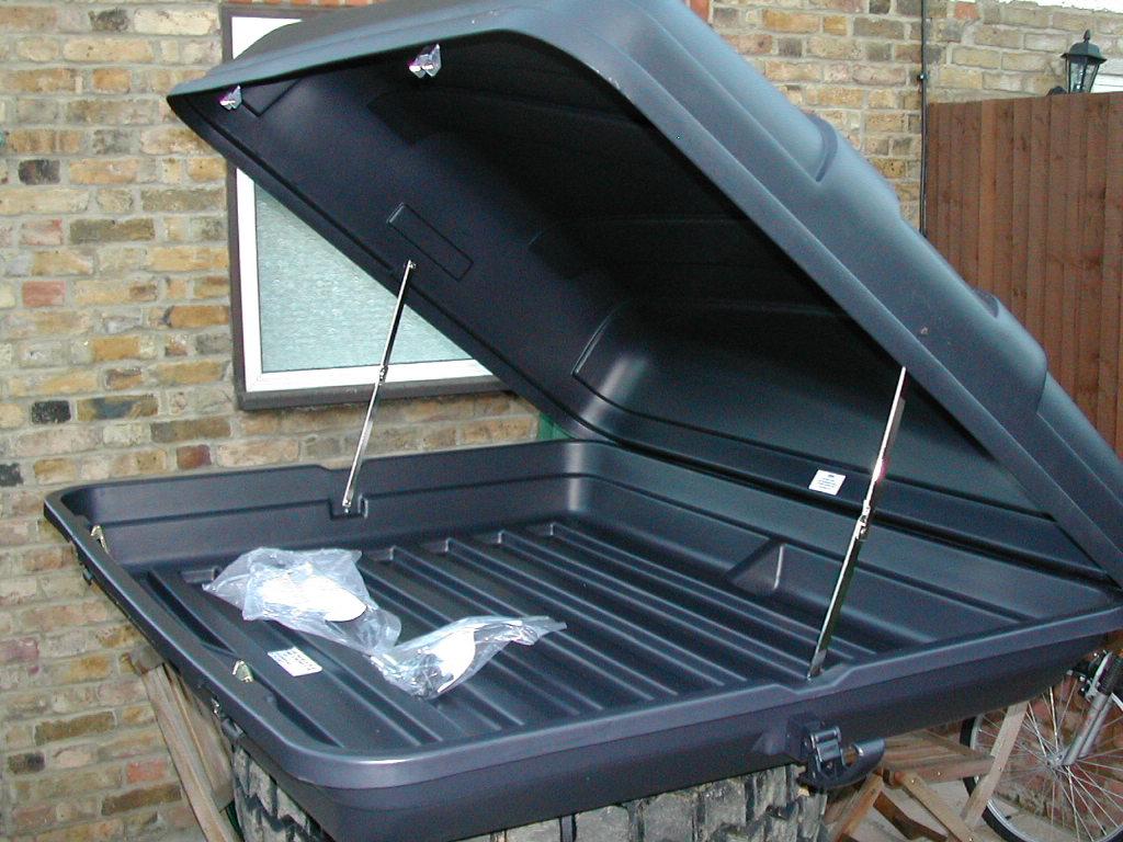 One brand new roof box in its unopened box.